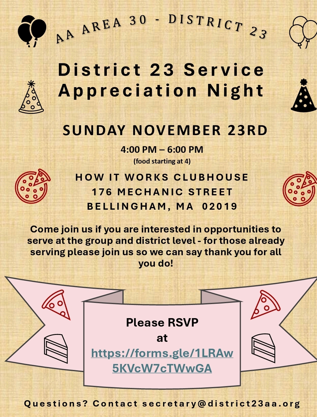 Service Appreciation Night 4PM Sunday November 23 at the How It Works Clubhouse, Bellingham. See flyer for details or RSVP: https://forms.gle/1LRAw5KVcW7cTWwGA.