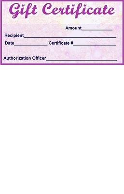| Gift Certificate [GCert] | | GIFT CERTIFICATES always available! The perfect item for raffles, anniversaries, or a hard-to-please sponsor. Gift certificates can be purchased for any amount and they never expire!