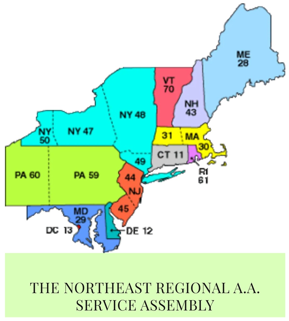 Tue Nov 11 7:30 District MeetingGSR meeting 7:30pm Tuesday November 11. ... (more) Nov 14-16 MA State ConventionMA State Convention Nov 14-16, Best Western Plaza, Marlboro MA. For details visit ... (more) Thu Nov 20 Hopkinton Freedom 42nd AnniversaryHopkinton Freedom group 42nd anniversary Thursday November 20 at Faith Community Ch, 146 E. Main St. ... (more) Sun Nov 23 District Service Appreciation4-6 PM Sunday November 23, How It Works Clubhouse, Bellingham. ... (more) Dec 5-7 Northeast Regional ForumHosted at the Omni Providence hotel. See ... (more) |